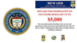 ATF: $5000 reward for tips in Gadsden gun store burglary The Bureau of Alcohol, Tobacco, Firearms and Explosives (ATF), the Gadsden Police Department and the trade association for the firearms industry ...